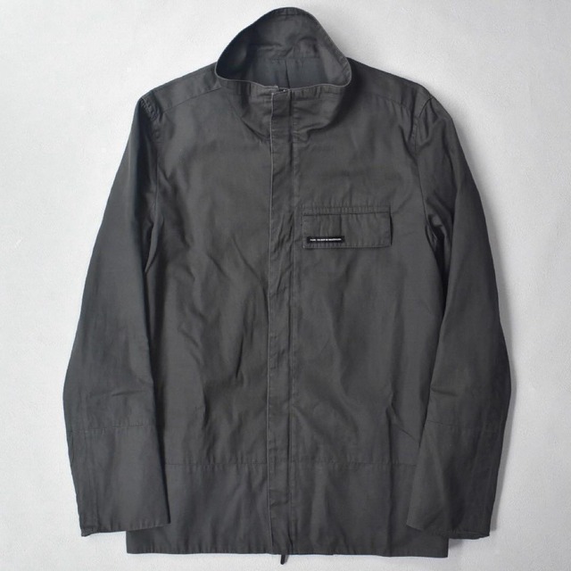 JULIUSの美学を感じさせる、前身nu/ke(ヌーク)のインダストリアルジャケット。サードストーン(THIRD STONE)製で、タグには「YOU MUST BE INDUSTRIALISED.」のメッセージ入り。無機質で洗練されたミニマルデザインが魅力です。コットン100%のしっかりとした生地に、立ち襟&比翼仕立てのフロントファスナー。riri製M6ダブルジップ仕様で、機能性とデザイン性を両立しています。 JULIUSやcarol christian poell、ディストピア系・テック系スタイルとの相性も抜群。ダークでソリッドな佇まいはアーカイブ好きにもおすすめの一着です。 【サイズ】01(S) 着丈 72.5 肩幅 44 身幅 51 袖丈 64 袖口幅13 【素材】表地:綿100% 【状態】目立つ傷や汚れなし(写真参照) 比翼裏はジップに反応して変色 【その他】ririM6ジップ動作良好、日本製、インナーポケット付き